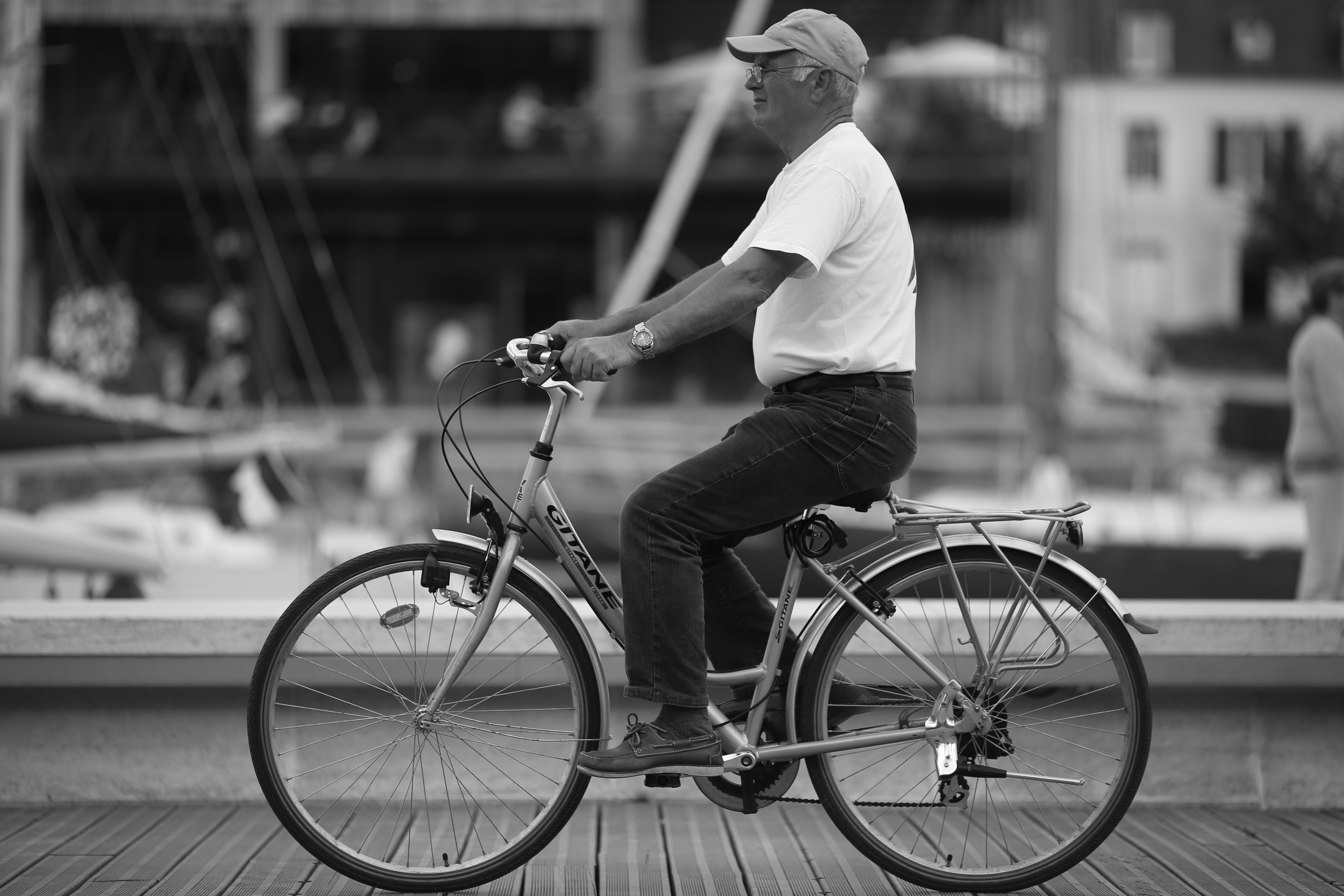 A man riding a bicycle at the port of Vannes, Brittany, in the north-west of France. Image source: Flickr image by Alexandre Dulaunoy (CC BY 2.0) (full-sized image).
