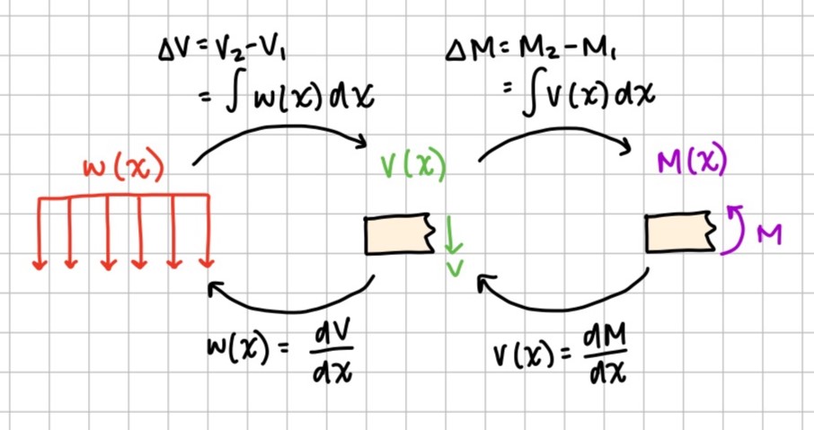 Creating a shear force and bending moment diagram allows us to create a graphical representation of \( V \) and \( M \) as a function of the position along the beam, \( x \). Therefore when creating internal loading diagrams we are trying to write equations for \( V(x) \) and \( M(x) \).