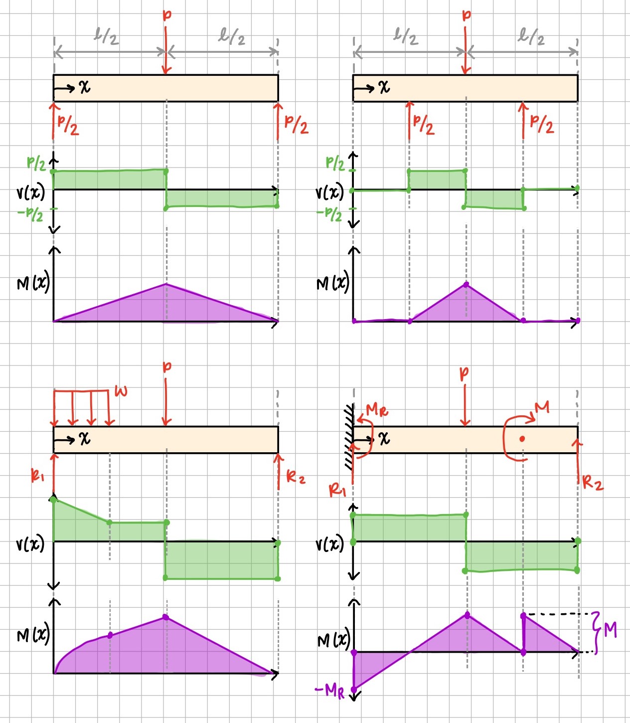 The general procedures for creating shear / bending moment diagrams are: